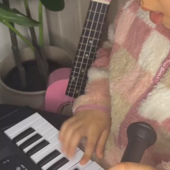 Yes, it comes with a functional microphone that allows your child to sing while playing! This interactive feature helps build confidence and encourages self-expression. Combined with the built-in demo tracks and sound effects, it turns simple playtime into an exciting performance for the whole family.